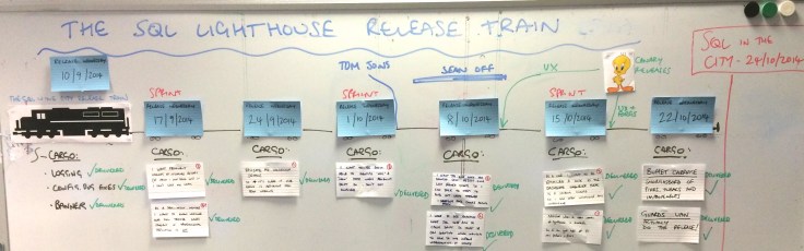 As I reflect on how we do software development on the SQL Lighthouse team now, it’s interesting to note the side-benefits that the Release Train has brought; including small user stories, #NoEstimates, collaborative planning and implicit scope management. This has turned into a long post, so I’ll cover those in my next one – 5 benefits of the Agile Release Train for a single team.